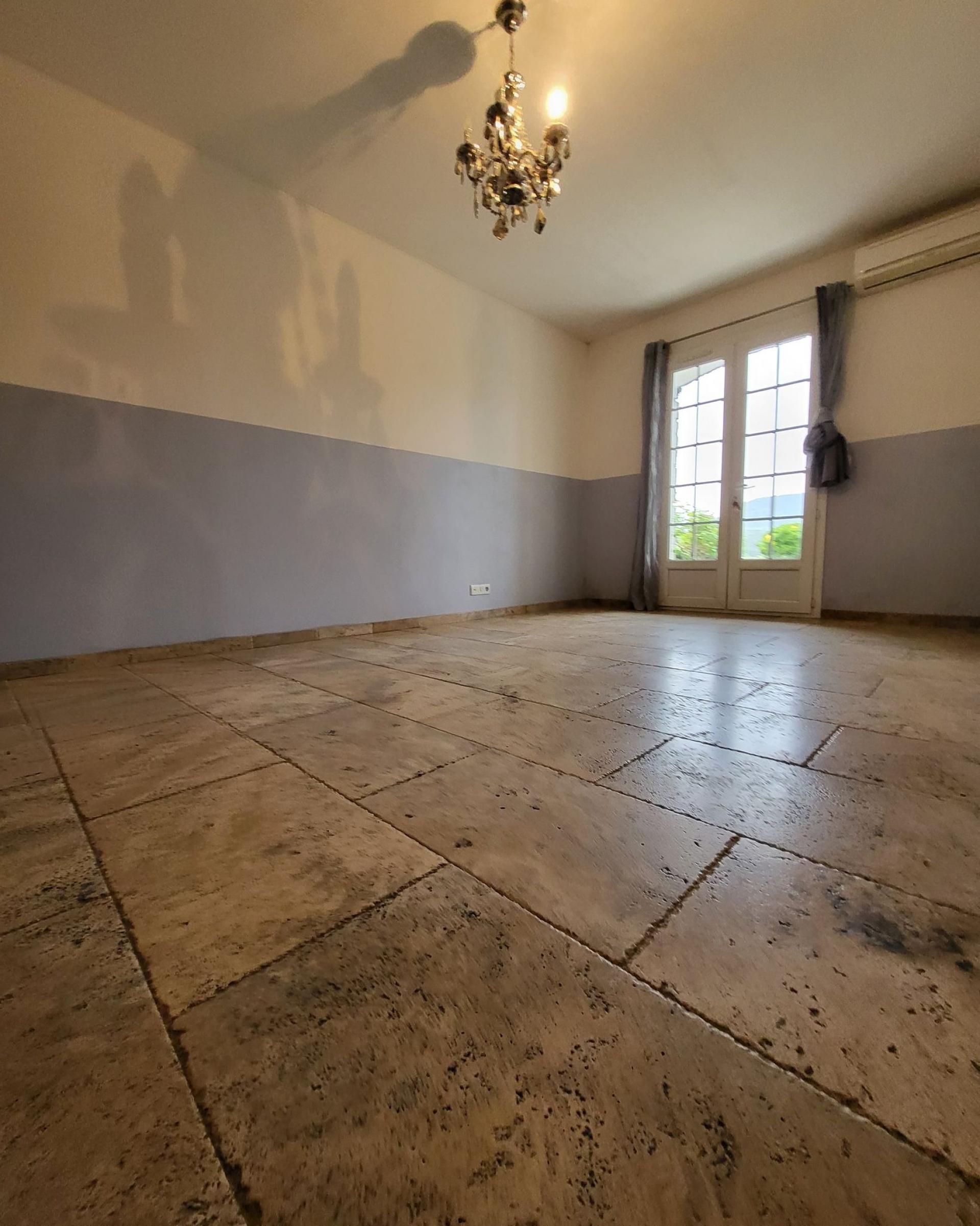 Très bel appartement de 85 m² habitables, composé d'un grand séjour avec cheminée et climatisation réversible, un coin cuisine semi équipée, un cellier, un couloir desservant une première chambre avec placard mural et climatisation réversible, une salle d'eau avec WC incorporés, une suite parentale avec placard mural, climatisation réversible et salle d'eau avec WC.