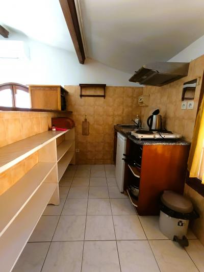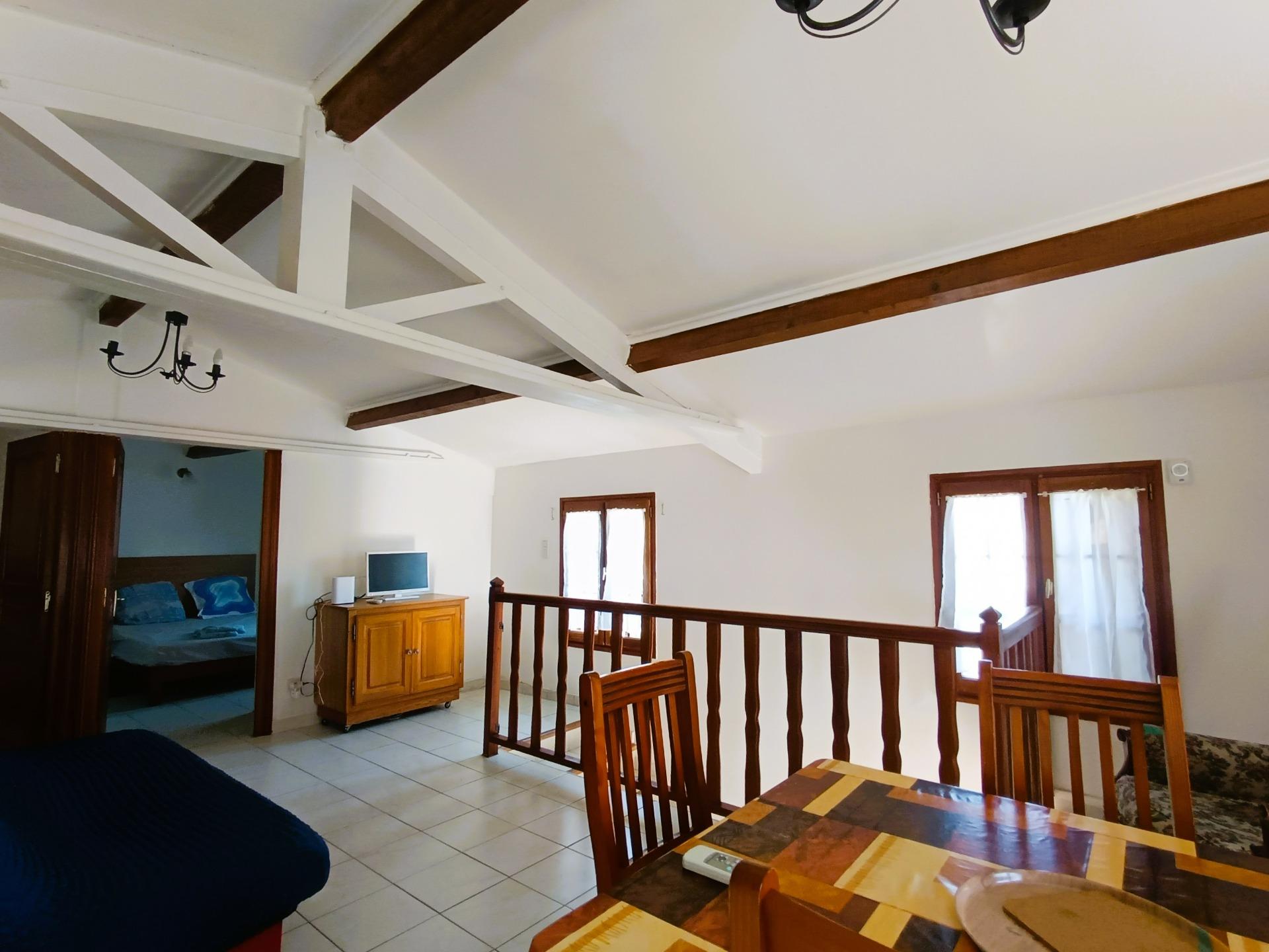 Logement composé d'un séjour climatisé avec coin cuisine aménagée, une salle de bain avec WC, deux chambres