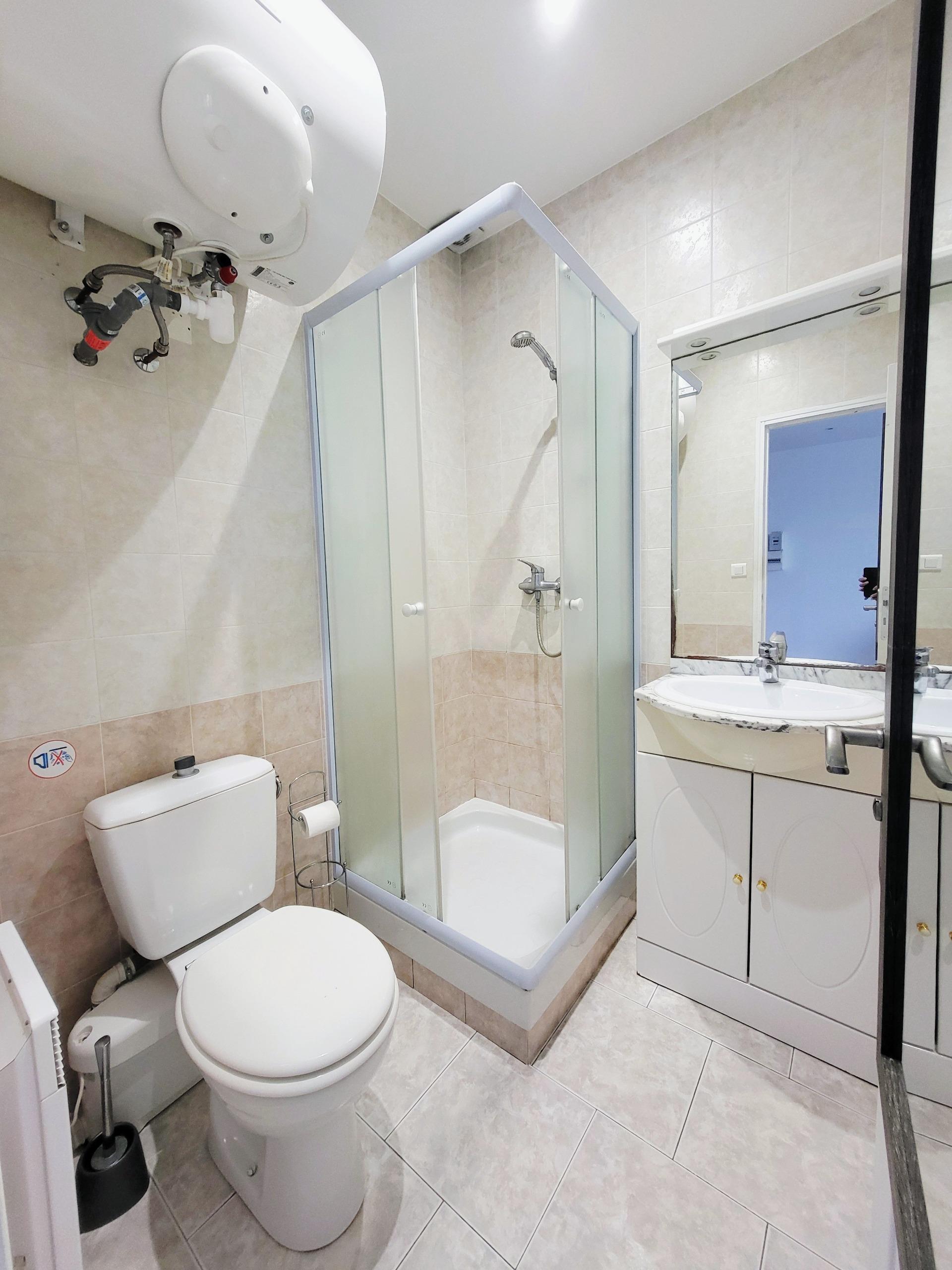 La salle de bain comprend une douche, un WC, un lavabo avec meuble de rangement ainsi qu’un chauffe-eau, offrant tout le confort au quotidien.